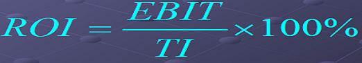 利润(EBIT)与项目总投资(TI)的比率。总投资收益率高于同行业的收益率参考值,表明用总